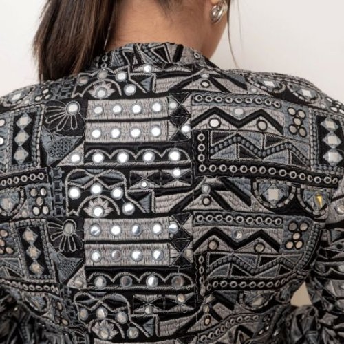 Short Black Embroidered Mirror Work Jacket